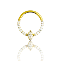 argolla de titanio grado 23 con múltiples zirconias redondas y una en forma de rombo, calibre 16g(1.2mm) con 8mm y 10mm de largo.
