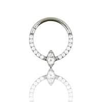 argolla de titanio grado 23 con múltiples zirconias redondas y una en forma de rombo, calibre 16g(1.2mm) con 8mm y 10mm de largo.