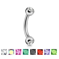 Piercing para ceja de acero quirúrgico con incrustaciones piedra zirconia, calibre 16 (1.2mm), poste 8 mm, bola 3 mm.