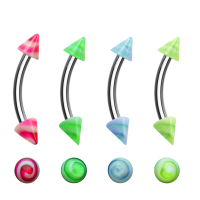 Piercing para ceja con poste de acero quirúrgico y picos de acrilico, figura paleta de dulce.