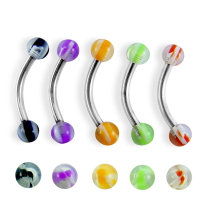 Piercing para ceja con poste de acero quirúrgico y bolas de acrílico en figura de canica, calibre 16, poste 8, bola 3.