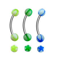 Piercing para ceja con poste de acero quirúrgico y esferas de acrilico blanco con estrella en diferentes colores.