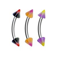 Piercing para ceja con poste de acero quirúrgico y picos de acrílico con figura de estrella y flor al centro, calibre 16, poste 8, pico 3.