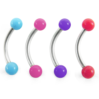 Piercing para ceja con poste de acero quirúrgico con bola acrílico de colores, calibre 16, poste 8, bola 3.
