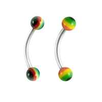 Piercing para ceja con poste de acero quirúrgico 316l y esferas de acrílico de los tres colores rastafari.
