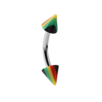 Piercing para ceja con poste de acero quirúrgico 316l y picos de acrílico de los tres colores rastafari.