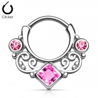 Clicker para septum de acero quirúrgico figura vintage calibre 16(1.2mm) de grueso con zirconias cristal, rosas y/o rojas,
