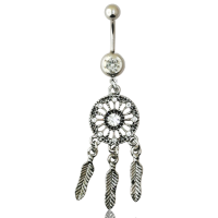arete ombligo colgante figura atrapa sueños con zirconias color crystal en calibre 14g(1.6mm)