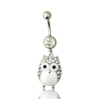 arete ombligo colgante figura buho con zirconias en color crystal, calibre 14g(1.6mm)