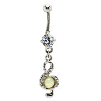 Colgante para ombligo con figura de clave de sol con incrustación opalita en la figura y en la pieza.