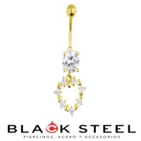 Colgante anodizado dorado con figura de collar con corazones y zirconias