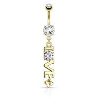 colgante para ombligo de acero quirúrgico 316L con baño de oro de 14 kilates, Calibre 14g(1.6mm) y10mm de largo.