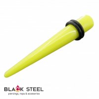 Piercing espina expansora y calibre normal, de acrílico color solido amarillo, con ligas negras