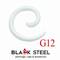 Espina en forma de espiral de acrilico color blanco, principal uso oido, calibre g12 equivalente a 2 mm
