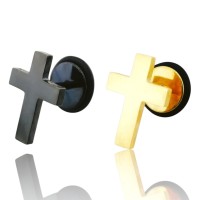 Falso expansor cruz anodizado negro o dorado(acero con baño de titanio) en calibre 16g(1.2mm) con poste de 6mm de largo