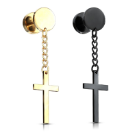Falso expansor anodizado(acero con baño de titanio) calibre 16(1.2mm), poste 6mm de largo, disco de 8mm(simulando calibre 0) con colgante cruz con cadena.