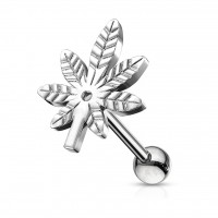Arete para perforación Tragus/Helix de acero quirúrgico 316L con figura en forma de mariguana