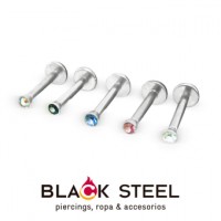 Piercing para labio de acero quirúrgico con zirconia de 2mm. rosca interna, calibre 16