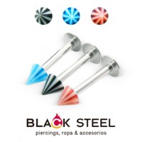 Piercing para labio con poste de acero quirúrgico y pico de acrilico, figura bola de playa.