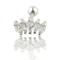 arete para labio/tragus/cartilago de acero quirúrgico 316L figura corona con zirconias en calibre 16g(1.2mm) y 6mm de largo