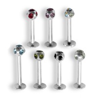 Piercing para labio de acero quirúrgico con múltiples incrustaciones de zirconia.