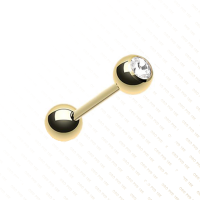Piercing para lengua anodizado oro pvd 18k, parecido a chapa de oro, calibre 14, largo 19 mm, bola 6 mm, con incrustacion zirconia crystal