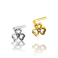 arete para nariz tipo L figura flor con piedra de acero quirúrgico 316L o anodizado dorado(acero con baño de titanio) en calibre 20g(0.8mm)