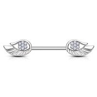 Pezonera figura alas de ángel multipiedra de acero quirúrgico 316L y anodizado dorado, calibre 14g(1.6mm) y 14mm de largo.