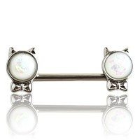 pezonera figura gato opalita tornasol de acero quirúrgico 316L en calibre 14g(1.6mm) con 14mm de largo