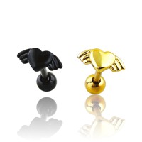 arete para oido(tragus/helix/lóbulo) anodizado(acero quirúrgico 316L con baño de titanio) figura corazón con alas, calibre 16g(1.2mm) y 6mm de largo