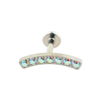 tragus barra curva con múltiples zirconias color crystal o tornasol con rosca interna de acero quirúrgico 316L o anodizado, calibre 16g(1.2mm) y 6mm de largo.